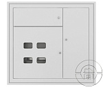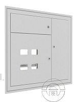 Распределительное отделение вмещает до 9 модулей автоматики из расчета на квартиру. Для большей безопасности доступ к токоведущим частям блокирован фальш-панелью, которую можно демонтировать. Слаботочное отделение предназначено для прокладки радиосети, телефонной линии, охранно-пожарной сигнализации, сети домофонов и прочего. Каждый из отсеков оборудован дверцей с замком. Корпус представляет собой металлическую раму, на которой непосредственно закреплены петли, на которые навешиваются двери. Для крепежа в нише на раме предусмотрены распорные болты.