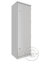 Металлический корпус ВРУ имеет сборно-разборную конструкцию, состоящую из установленных на цоколе боковых рам, соединенных между собой стяжками. Металлический шкаф состоит из боковых рам и закрепленных на них задней стенки и крыши. Ввод и вывод кабелей предусмотрен в нижней части корпуса. Процесс сборки становится более экономичным благодаря съемным боковым стенкам.