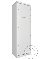 Металлический корпус ВРУ имеет сборно-разборную конструкцию, состоящую из установленных на цоколе боковых рам, соединенных между собой стяжками. Шкаф состоит из боковых рам и закрепленных на них задней стенки и крыши. Ввод и вывод кабелей предусмотрен в нижней части металлокорпуса. Процесс сборки становится более экономичным благодаря съемным боковым стенкам.