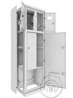 Металлический корпус ВРУ имеет сборно-разборную конструкцию, состоящую из установленных на цоколе боковых рам, соединенных между собой стяжками. Шкаф состоит из боковых рам и закрепленных на них задней стенки и крыши. Ввод и вывод кабелей предусмотрен в нижней части корпуса. Процесс сборки становится более экономичным благодаря съемным боковым стенкам.